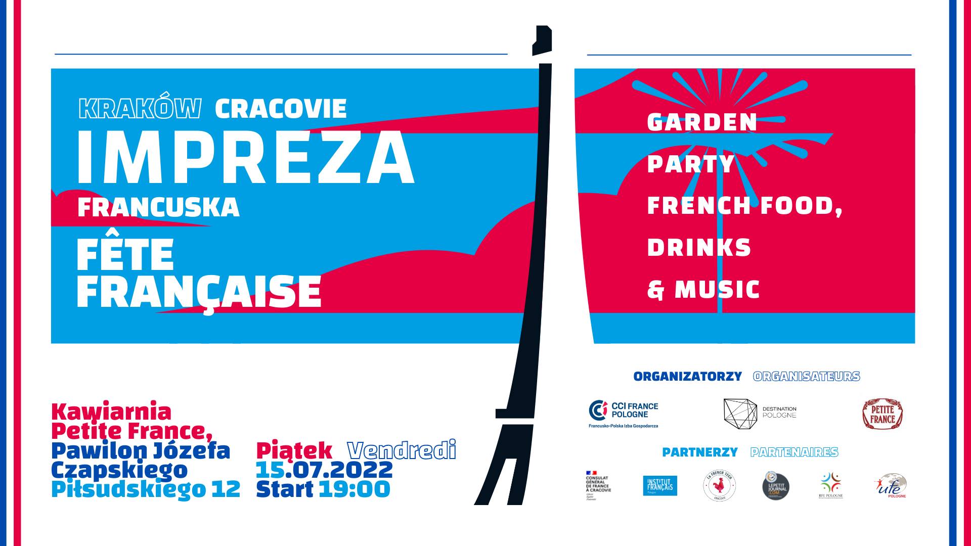 Join us with our collaborators from the Francusko-Polska Izba Gospodarcza CCIFP, Destination Pologne and the entire French-speaking community of Krakow in the sublime setting of Café Petite France (Pawilon Józefa Czapskiego) on July 15 at 7pm !